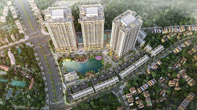 • Quy mô dự án: Bao gồm 03 tòa chung cư cao 25 tầng, 83 căn biệt thự và liên kế, công trình công cộng dịch vụ cao 2 tầng